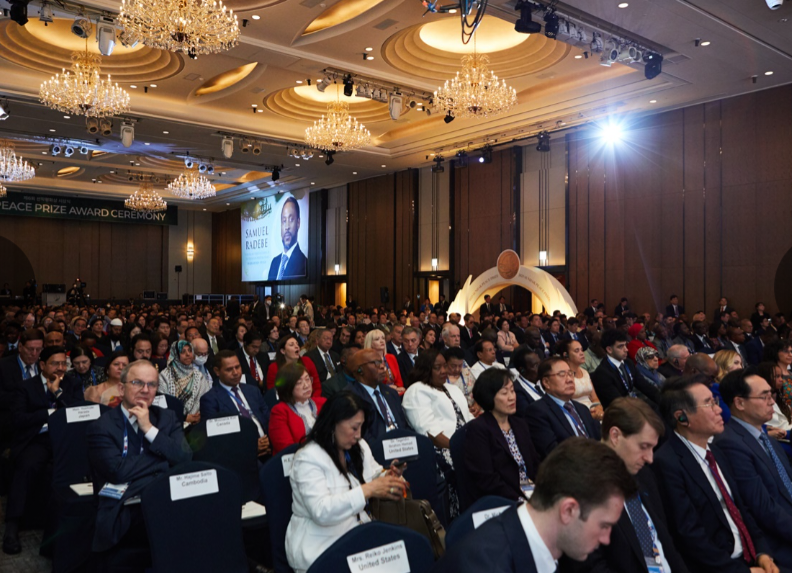 On Friday April 11, 2025 The Sunhak Peace Prize Ceremony took place at the Crystal Ballroom of Lotte Hotel World, Seoul, Korea, with an attendance of over 750 international guests, including global leaders, former and current heads of state, prominent civil society representatives and global leaders from approximately 100 countries as well as virtual global attendance.
